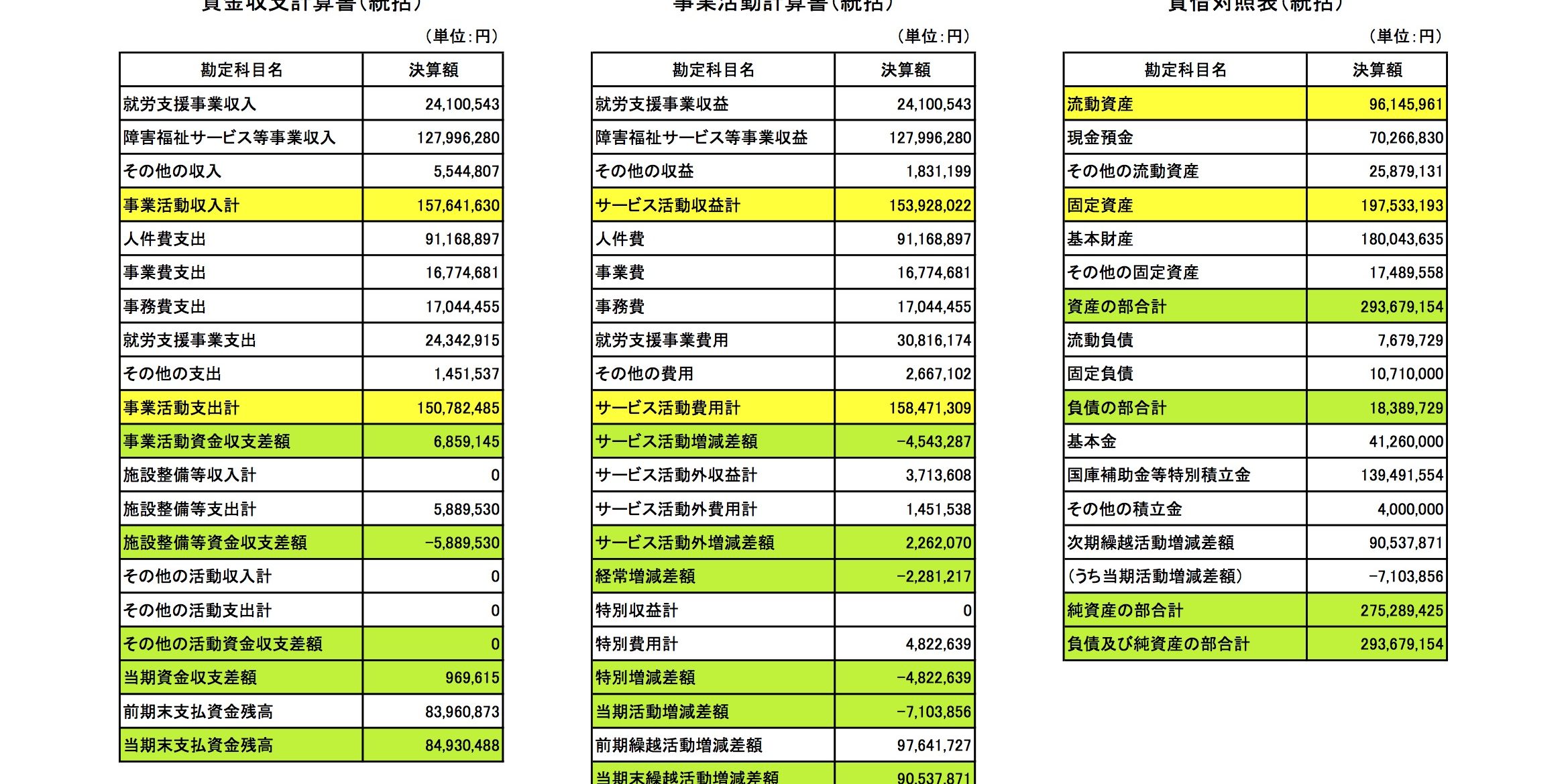 平成24年度 社会福祉法人わらしべ舎 財務諸表