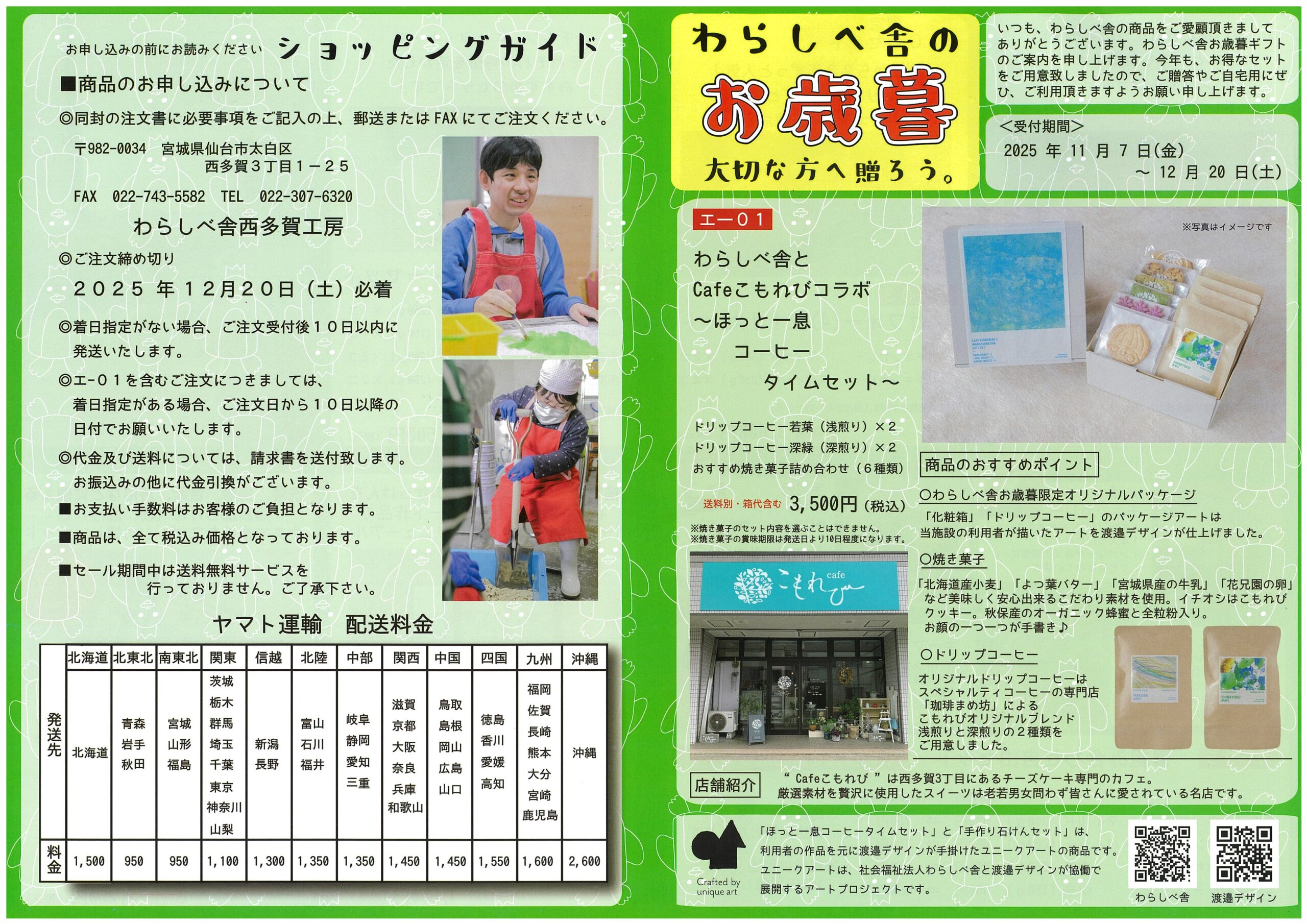 また、お中元でご好評いただきましたエコ班とcafeこもれび様のコラボギフトも引き続きご注文いただけます。