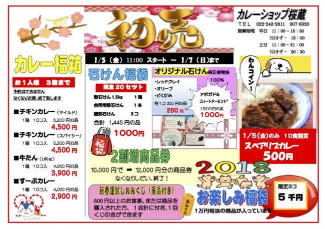 どうもHP担当です! 2018年の元旦は初夢・初日の出・初詣など いい時間を過ごせましたでしょうか? 担当は荒浜で素晴らしい朝日を見ることができ 気持ち良いスタートを切ることができました☆ さて当店の初売り…