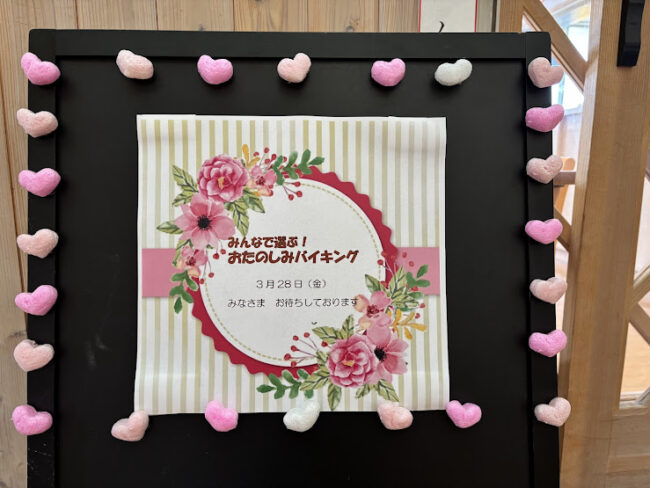 本日は今年度最後のイベント給食として、バイキング給食を行いました! 利用者の皆さんも朝から楽しみでソワソワ・・・ 事前にメニューの人気投票を行ったこともあり、皆さん大好きなメニューが並びました! 本格的バイキングに皆さん…